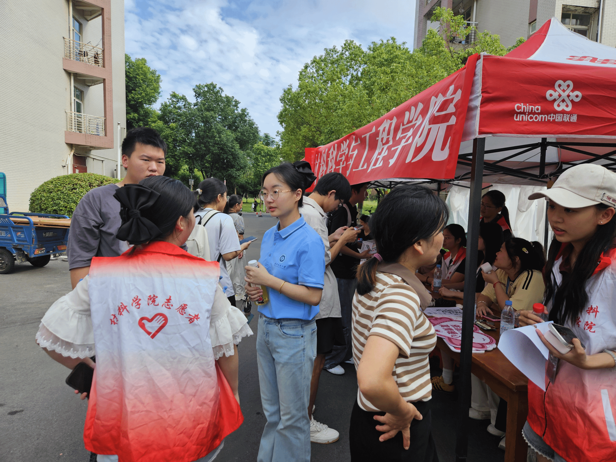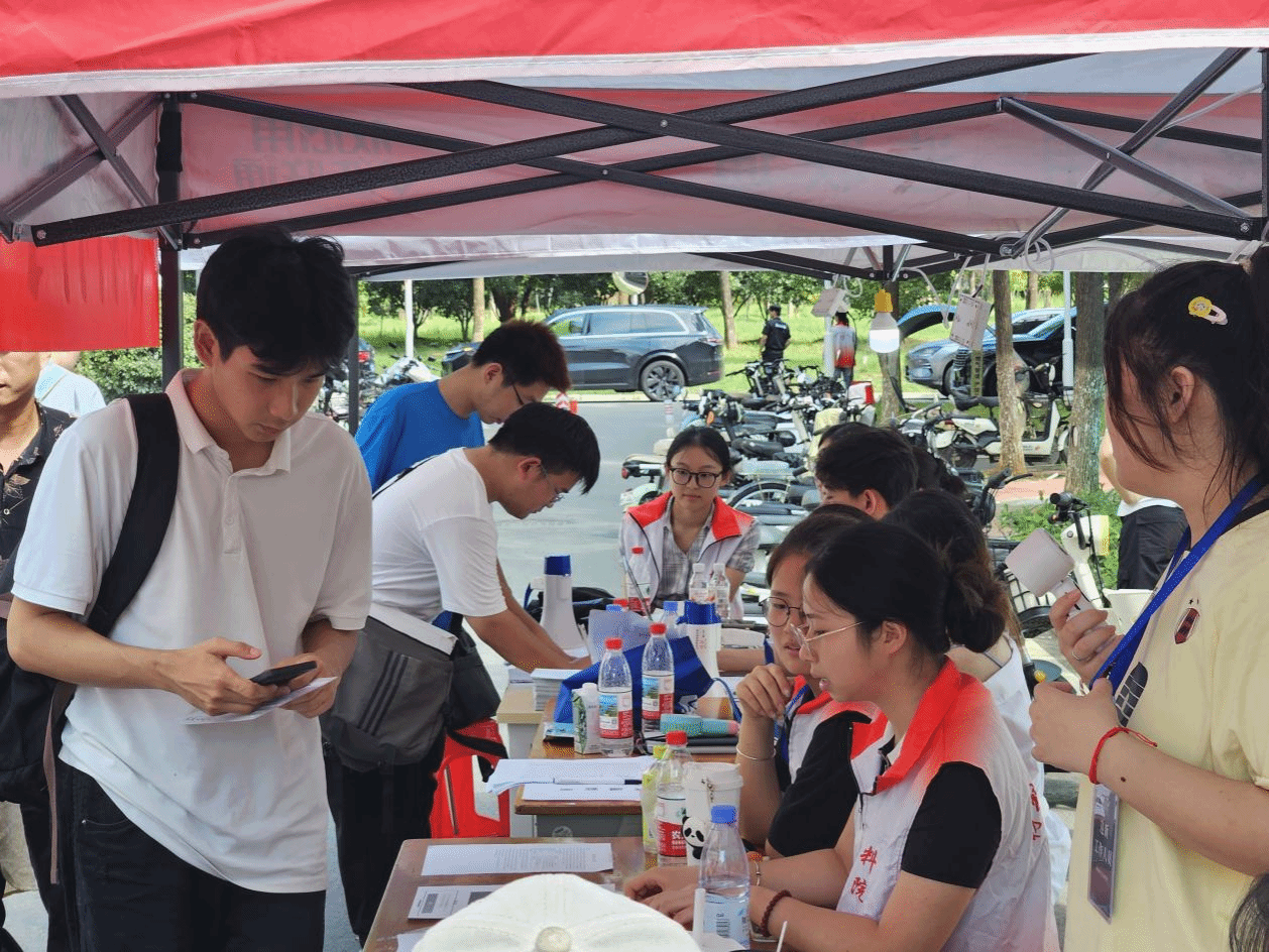 组建“党员先锋服务队”,让党旗飘扬在迎新一线,迎新现场,党员志愿者穿梭于人群中,为新生及家长提供校园地图指引、报到流程讲解等精准服务。