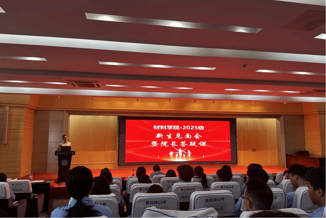 ,开启人生崭新的求学征程。作为学生大学时光的“同行人”,王罗新围绕“立德、立言、立功”与大家分享成长的思考,对新生提出三点要求:一是要以“立德”为根本,筑牢成长之基。他强调“立德”不仅是要恪守做人的道德底线,更是秉持科研诚信的准则。要将“崇真尚美 笃行致远”的校训融入一言一行,成长为既有专业本领、更有家国情怀的材料人。二是要以“立言”为路径,锤炼专业素养。“立言”不是空泛的表达,而是材料人基于实证的理性发声:写实验报告时,要以精准的数据、严谨的逻辑呈现研究过程;参与学术讨论时,要敢于基于专业认知提出疑问、分享见解;未来撰写论文或技术方案时,要让每一个观点都有科学依据支撑。希望你们多泡实验室、多查专业文献、多与老师同学交流,在“言之有物、言之有据”中,练就材料学科所需的学术表达力与思维洞察力。三是要以“立功”为追求,践行责任担当。材料学科是支撑国家战略的“硬核”领域,从“天问一号”的耐高温密封材料,到新能源汽车的电池电极材料,再到医疗领域的生物复合材料,都离不开一代代材料人的探索。希望所有新生要把“立功”的追求融入专业学习,未来投身行业助力国家新材料产业发展。