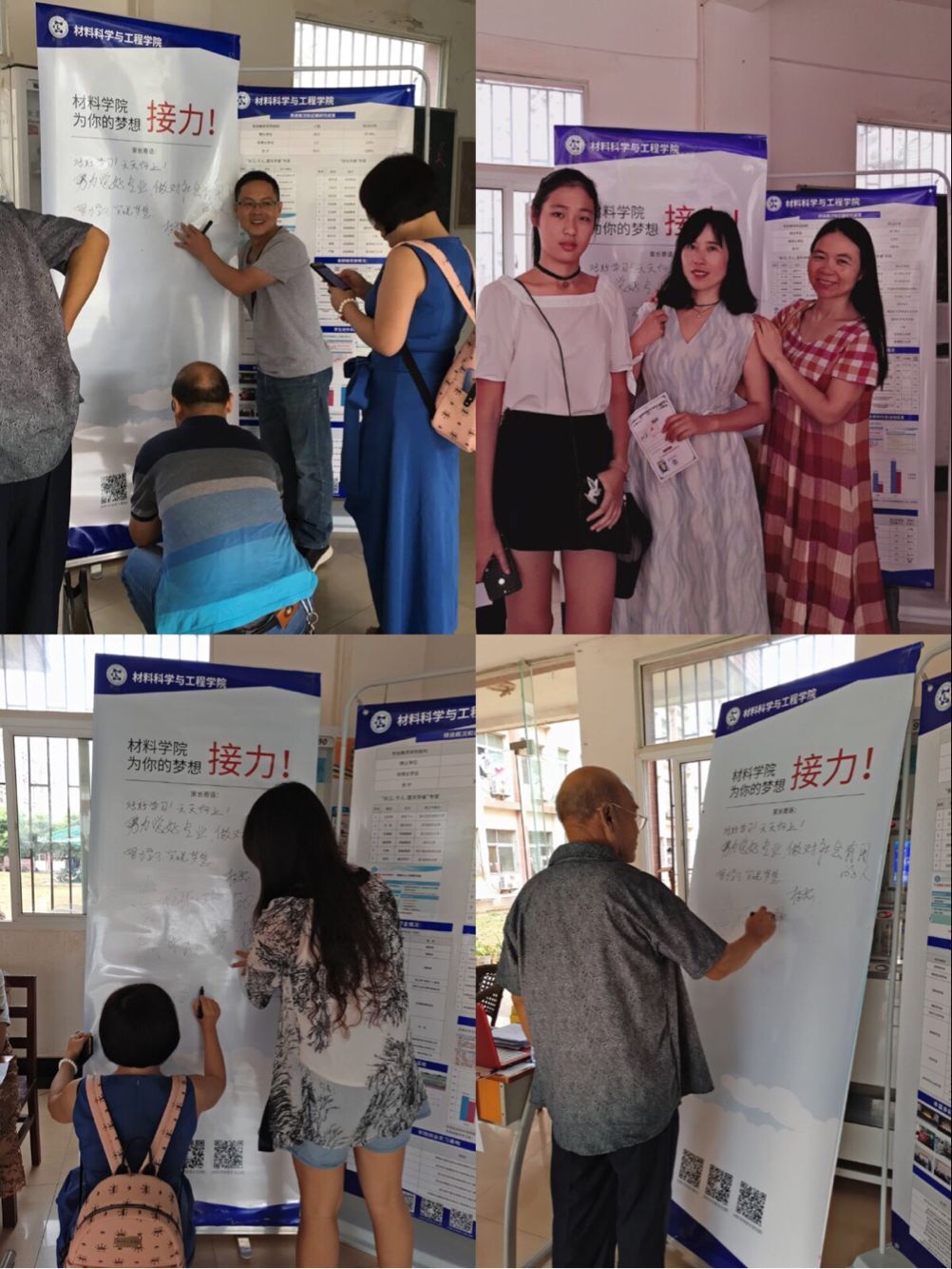 准备了“为梦想接力”展板,邀请各位新生家长在展板上写下对孩子的寄语和期望,新生则写上自己的大学目标和梦想。展板互动部分让新生能够在刚进大学时明确自己的目标,使入学时的“逐梦感”更强烈,提升新生大学入学时期的热情。志愿者们现场给每位学生及家长拍摄全家福,后期由葡京娱乐场