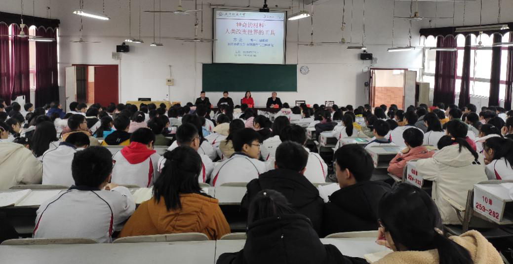 方正副教授开展了题为《神奇的材料 人类改变世界的工具》的科技讲座,详细的讲述材料与人类文明的互动发展,从基础知识、应用场景、技术路线、产业空间、未来前景等几个方面,讲解了学生们感兴趣的材料学科知识,使学生认识到材料对人类历史、环境、能源、信息、科学技术及国民经济的巨大作用。讲座让学生们零距离了解当前材料学科的前沿动态、专业发展变化和市场应用,现场播放的视频—《最前沿的高科技材料》,更是让现场的学生们非常兴奋,对材料魔术般的变化惊叹不已。
