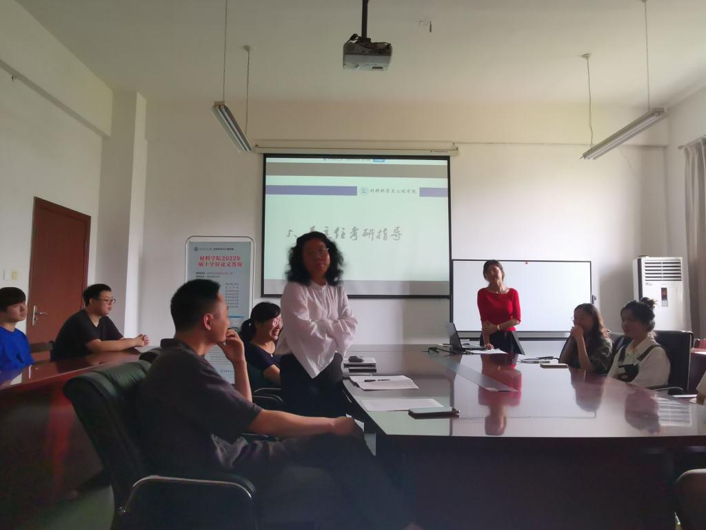 谭海英老师建议同学们在备考过程中有任何问题随时与老师联系,畅通信息沟通渠道,助力学生考研成功。朱宗明老师从专业的角度对考研院校选择给予了指导,并表示希望同学们不扎堆报考,多看多对比,选择自己适合的院校。高分子系主任左丹英老师给同学们提出两点建议:一是要对材料专业有信心,材料方向就业前景良好,希望同学们能够在本专业深耕发展;二是要慎重跨考,认真分析了跨考的风险和难度,引导同学们认真选择报考专业和报考学校。