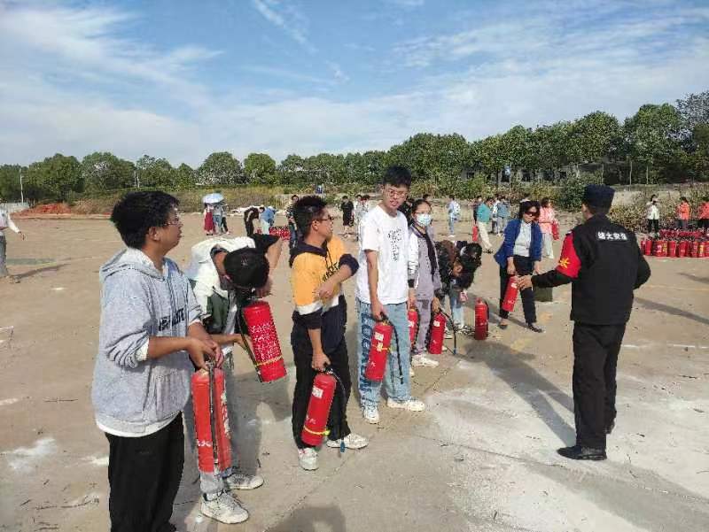 开展消防灭火安全演练活动,党委书记陈桂枝,辅导员毛成兴、曾玉竹,大一新生代表参加了此次演练活动。