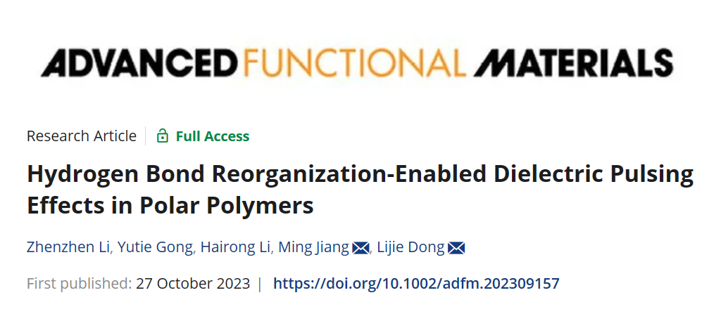 姜明副教授团队在热响应介电材料领域获得新进展,继此前以“Relaxation-Induced Significant Room-Temperature Dielectric Pulsing Effects”为题的论文(Adv. Funct. Mater. 2023, 33, 2301009.//doi.org/10.1002/adfm.202301009)发表后,最近又以“Hydrogen Bond Reorganization-Enabled Dielectric Pulsing Effects in Polar Polymers”为题在《Advanced Functional Materials》上发表了其“姊妹篇”研究工作。这是该团队2023年度在AFM发表的第三篇研究论文。武汉纺织大学为该论文的第一署名单位,葡京娱乐场