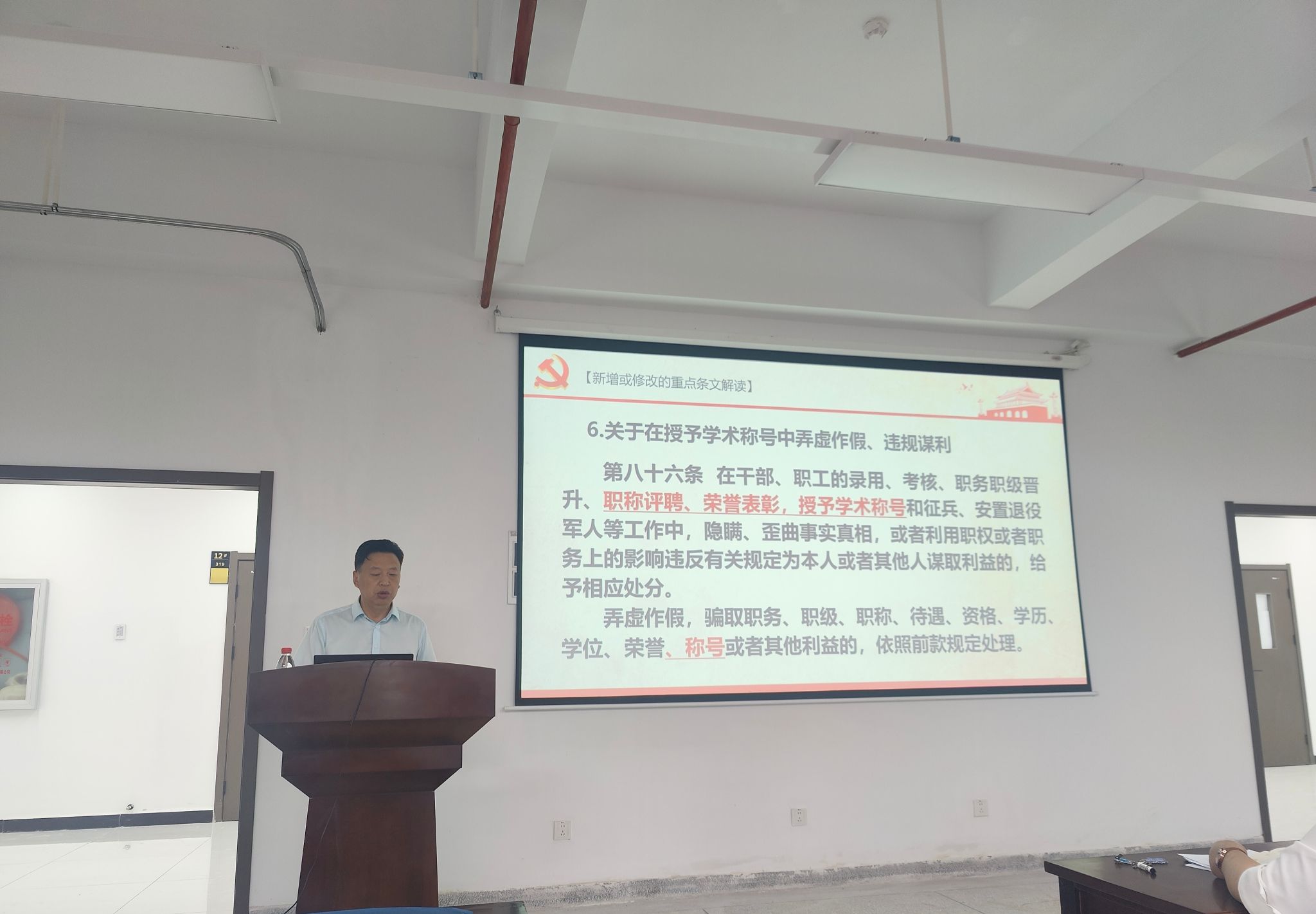 接着,程碧海回顾了近年来发生在高校和身边的违纪典型案例,从违反政治纪律、组织纪律、廉洁纪律、群众纪律、工作纪律和生活纪律六个方面,紧密结合师德师风十项准则,进行了全面而深入的剖析。他借助具体的事例警示全体教职工,要时刻保持对“纪律”的敬畏之心,严格自律,避免重蹈覆辙。