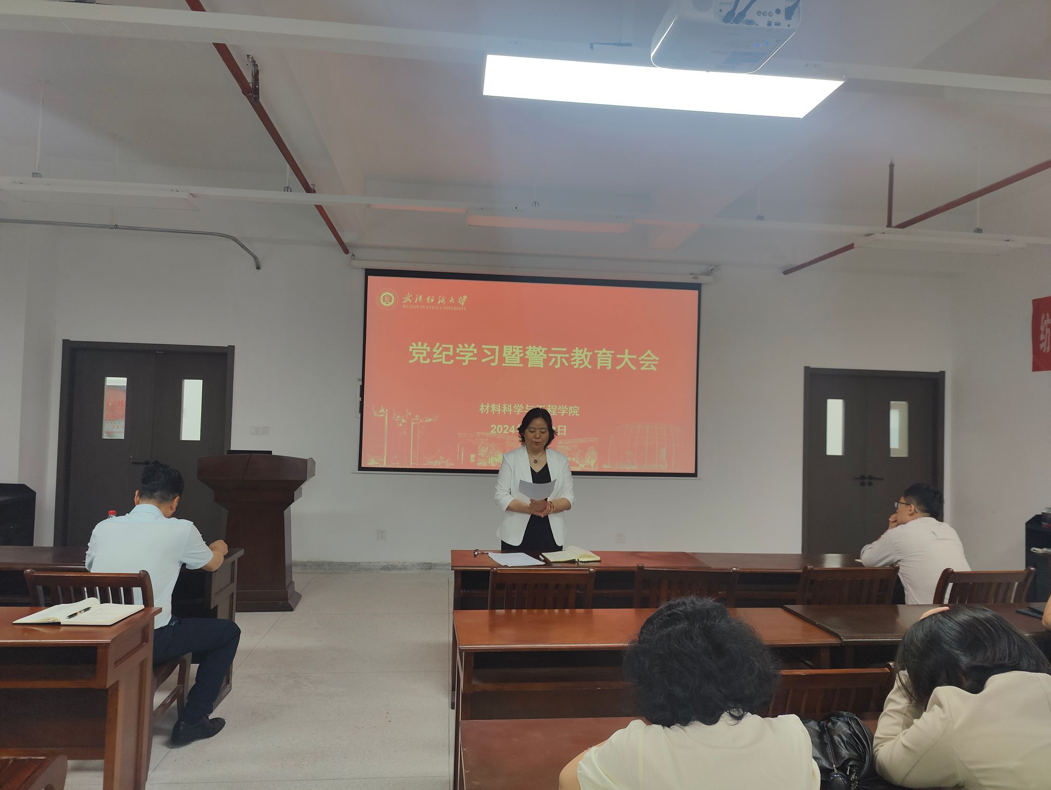 陈桂枝随后围绕师德师风十项准则和武汉纺织大学失范行为的负面清单进行了详细解读。她指出,师德师风是教师的灵魂,是高校教育的根基。她要求全体教职工要时刻对标十项准则,不断检视自己的行为,将党纪学习教育与师德师风建设相结合,不断提高自身的政治素养和业务能力。