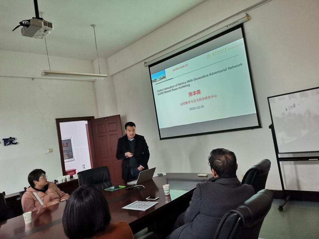 数计葡京娱乐场 张本龚汇报了Defect detection of fabrics with Generative Adversarial Network (GAN) Based on flaws modeling