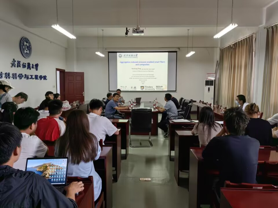 高效吸附课题组邀请,以“Aggregation induced emission enabled smart fibers and composites”为题进行了专题报告,报告由刘欣副院长主持,国重副主任杨应奎教授、课题组全体成员以及纺织葡京娱乐场