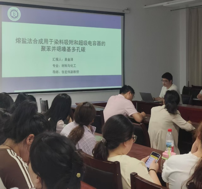 成功举办了2025年第12期研究生学术论坛。本次论坛由徐杰和刘学两位老师担任主持,来自23级研究生吴金泽、高晶晶、葛慧三位同学分别展示了在聚苯并噁嗪基多孔碳材料开发、MXene杂化材料开发及高效磷杂菲阻燃剂PDA领域的前沿研究成果。