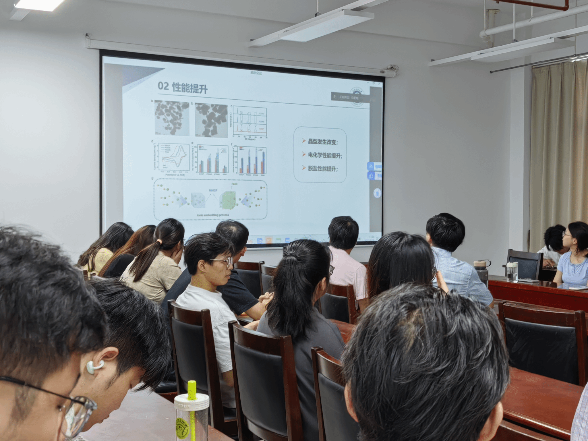 的研究生马亚成、胡雅新和王永婧三位同学分别围绕功能材料在能源、医药与智能响应领域的前沿应用进行了精彩汇报,展示了葡京娱乐场