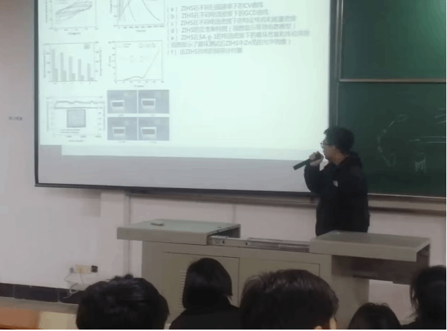 最后,张吉健的汇报题目是“三者协同助力高性能锌离子混合超级电容器”,他强调本文的焦点是将三个关键元素融合在一起:高性能锌离子电极材料、先进的电解液和精密设计的电极结构。通过这三者协同作用,研究人员成功提高了超级电容器的能量密度和循环寿命,使其在储能领域具有更广泛的应用前景。