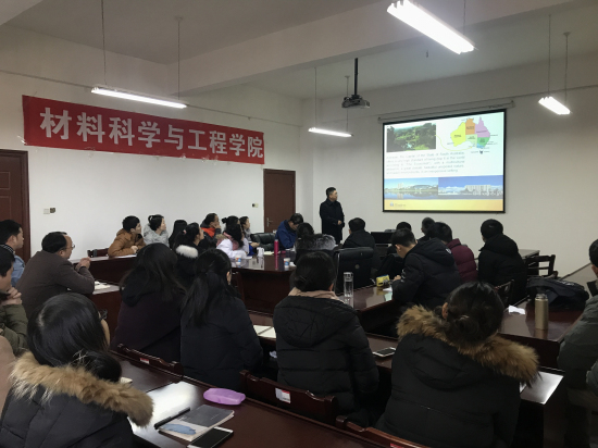 唐博士指出纳米填充材料能有效增强聚合物材料,尤其是环氧树脂类材料的机械性能,同时在增强纤维复合材料方面也具有良好的效果。他综述了现有的一些数据,讨论了纳米粒子加入连续纤维复合材料的制备方式和影响,尤其突出间断裂、冲击损伤阻力和冲击后压缩强度的结果。采用电阻抗体层成像术,通过检测GF / EP复合材料中纳米粒子渗透网络的电导率为监测分层生长和冲击损伤提供了一个独特的机会。之后,唐友宏博士与现场师生进行了互动讨论,取得了良好的学术效果。本次学术报告开拓了师生们的学术视野。