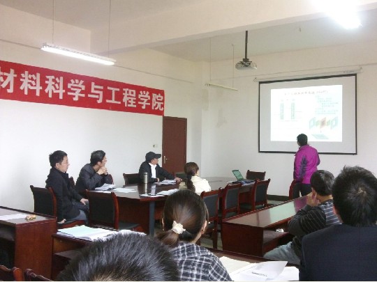 报告会上李琼老师为大家介绍了质子交换膜燃料电池(PEMFC)是将燃料的化学能直接转变成电能,具有能量转换率高、无污染等特点,是一种非常有前途的高效绿色能源动力源。质子交换膜燃料电池在高温下使用是解决体系水热管理复杂性、提高催化剂对CO的耐受力,改善电池阴阳两极尤其是阴极的氧化还原反应动力学,进而提高电池工作效率的有效措施之一。然而目前在质子交换膜燃料电池系统中广泛采用的是全氟磺酸膜,在膜内以水作为质子传导介质,质子的传导特别依赖于水,严重阻碍其在高温低湿环境应用。因此采用了通过对Nafion进行改性掺入咪唑疏水改性的小分子、端基为咪唑环具有不同支链结构的聚合物以及掺入含氨基基团的偶联剂表面枝接改性二氧化钛纳米管,以制备能在高温低湿度运行的复合质子交换膜。对膜的结构理论与性能的研究分析,研究在高温低湿下含氮化合物改性Nafion的作用机理及质子传导机理,探讨高温低湿燃料电池用质子交换膜的技术。报告受到广大老师的一致好评,会后李琼博士和老师们进行了广泛的交流。