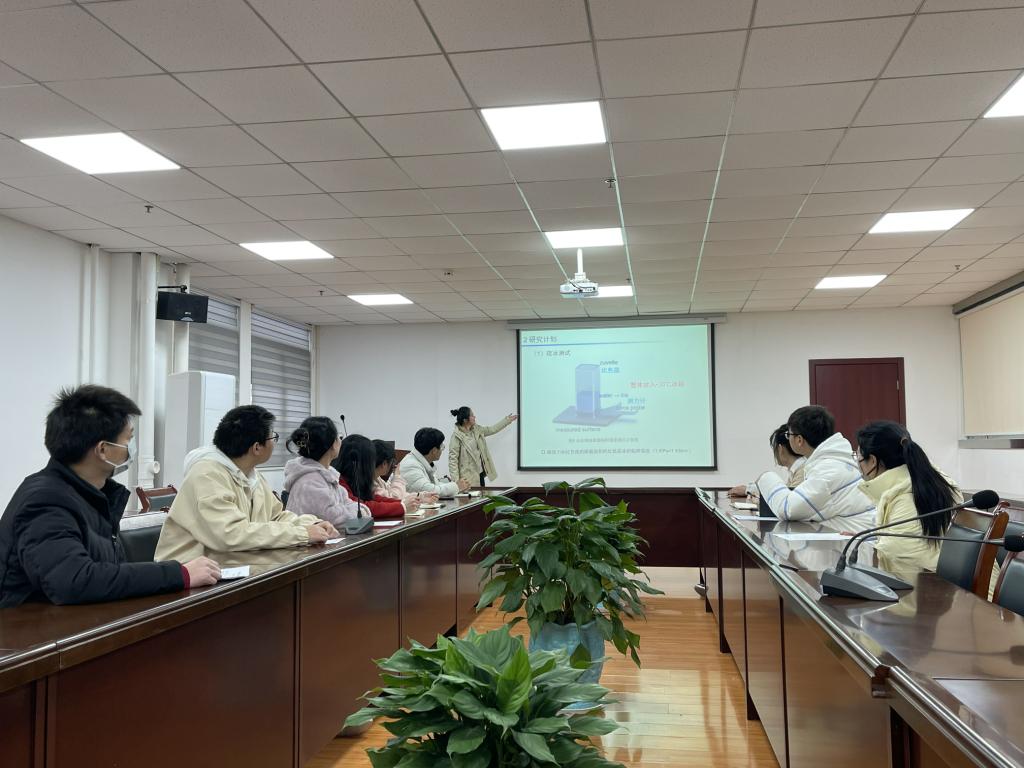 首先,研二同学汇报了近期实验成果以及实验计划,研究主题主要包括采用静电植绒技术制备超疏水防疏冰表面以及聚酰胺酸制备耐高温过滤材料。各位老师对研二同学目前实验方法进行指导,并对未来科研方向进行规划。接下来,研一同学分享了与各自课题相关的高被引文献,研究主题主要包括湿法纺丝技术、静电纺丝结合静电喷涂技术以及离心纺丝技术。最后,研三同学具体分享了对应课题的实验方法和技巧。各位老师要求各年级研究生加快实验进度,提高文献阅读能力及写作能力,并建议参会的本科生从研究生汇报中学习相应的科研知识与学术汇报技巧。