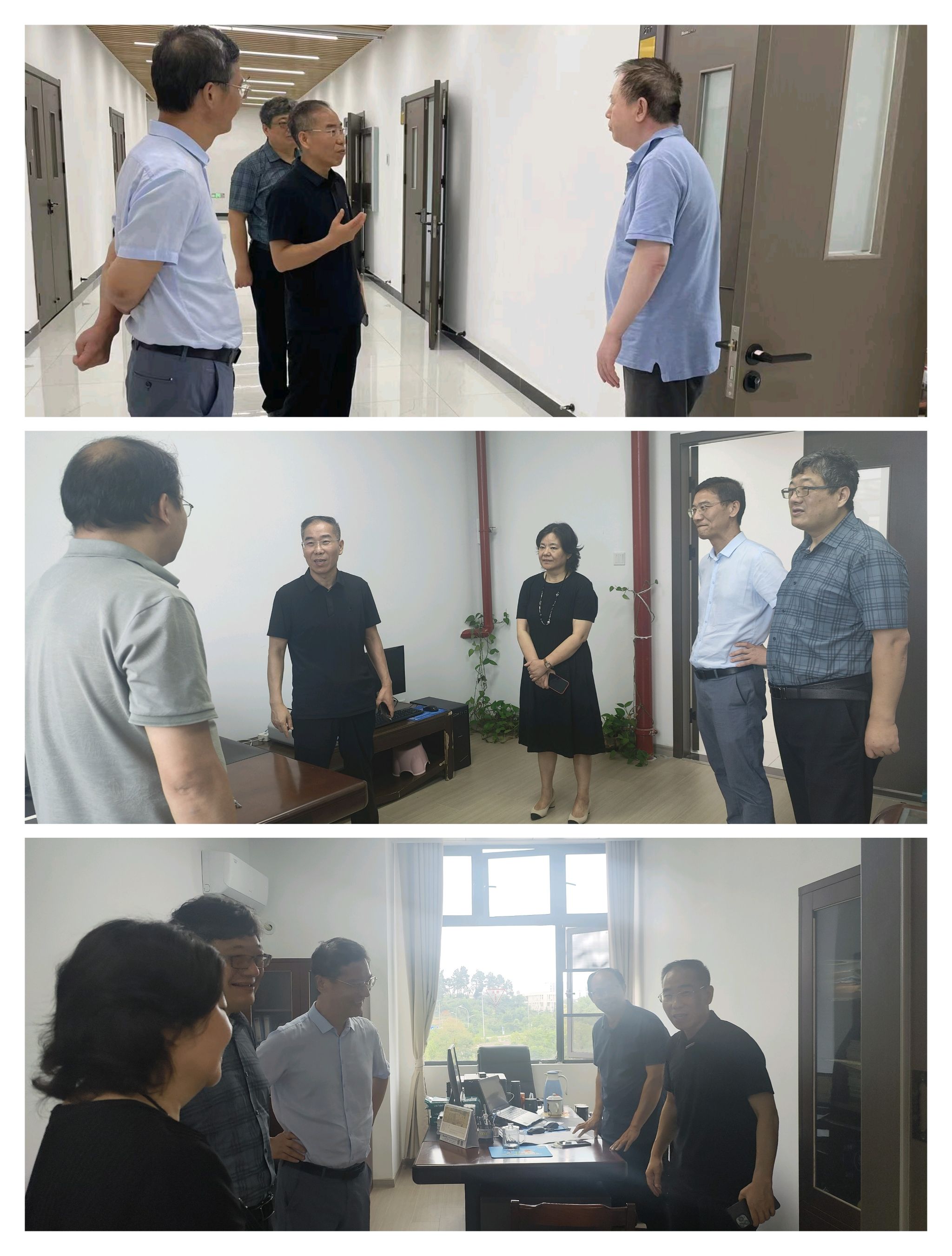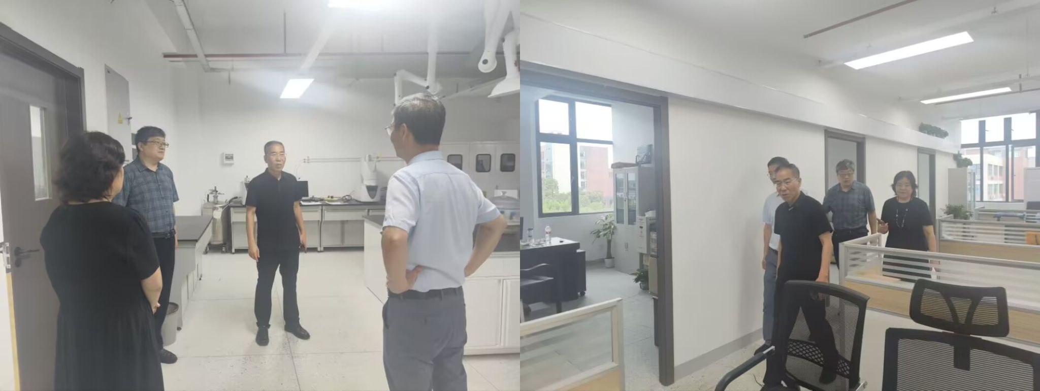 党委书记陈桂枝与院长王罗新陪同,并介绍实验室布局及功能。