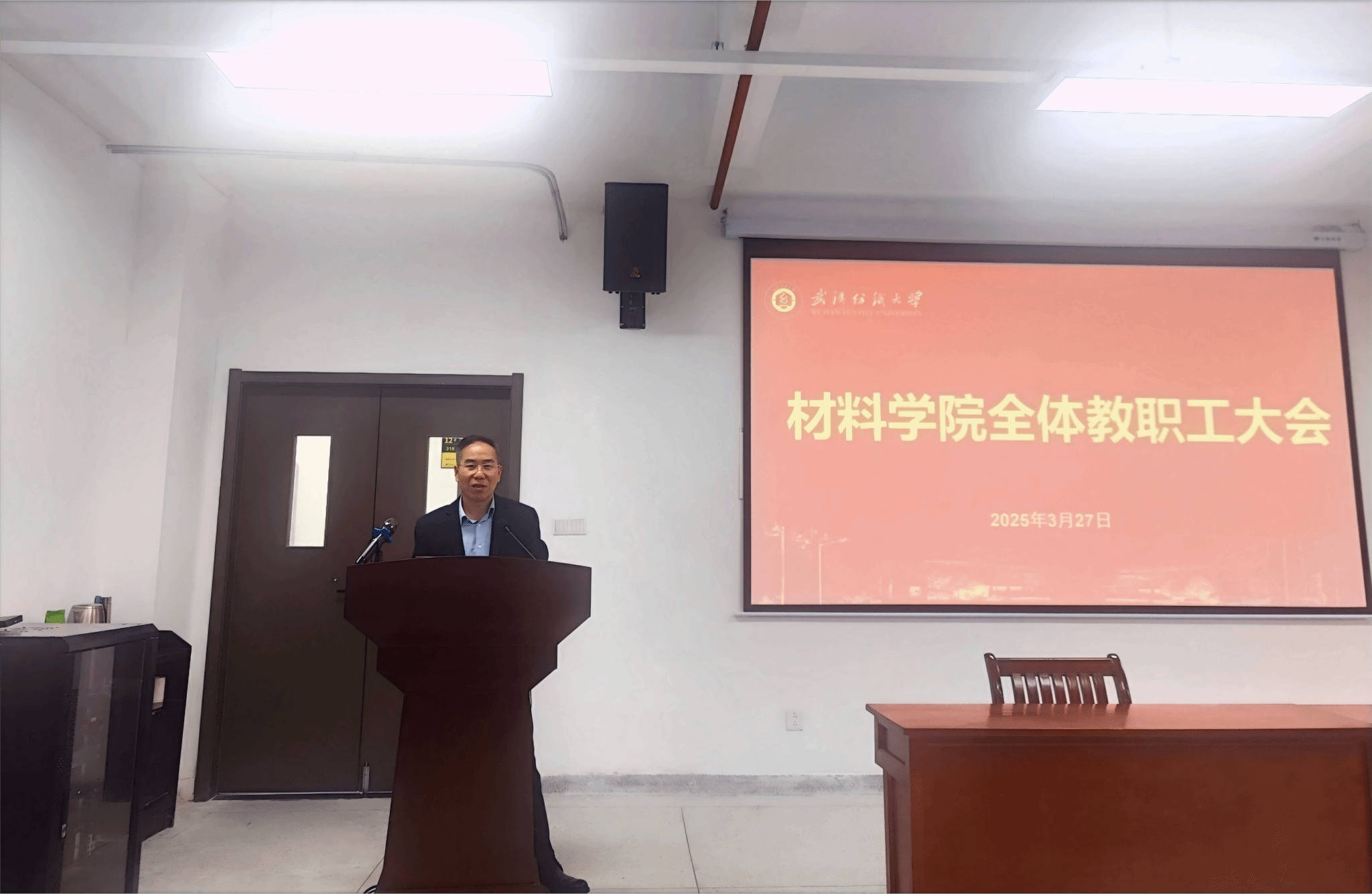 全体教职工参加会议。