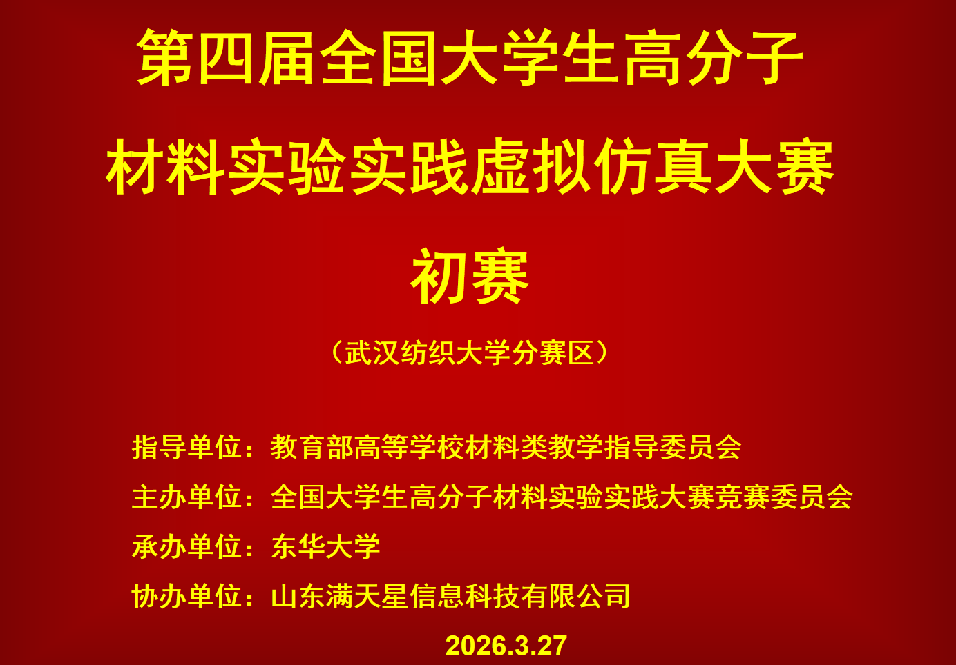 于2026年3月27日举办了第四届全国大学生高分子材料实验实践虚拟仿真大赛(武汉纺织大学分赛区)初赛暨校内选拔赛。