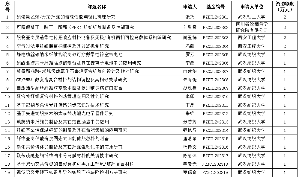 2023年度纺织新材料及其应用湖北省重点实验室开放课题评审结果公示