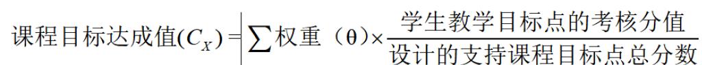 根据教学大纲提出的课程目标,分解课程各个教学环节对课程目标评价的权重(θ),对学生在相应教学环节的课程目标达成进行评价,课程目标各项达成情况按下式计算。