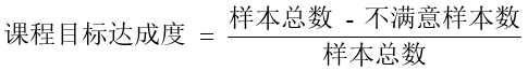 课程负责人组织学生进行课程目标达成满意情况的调查,按照“非常满意、满意、不满意”等多值记录,课程目标评价值是获得的样本总数中取得“满意”及以上的所有样本数总会与全部样本的比值(按下式计算),完成课程质量分析。