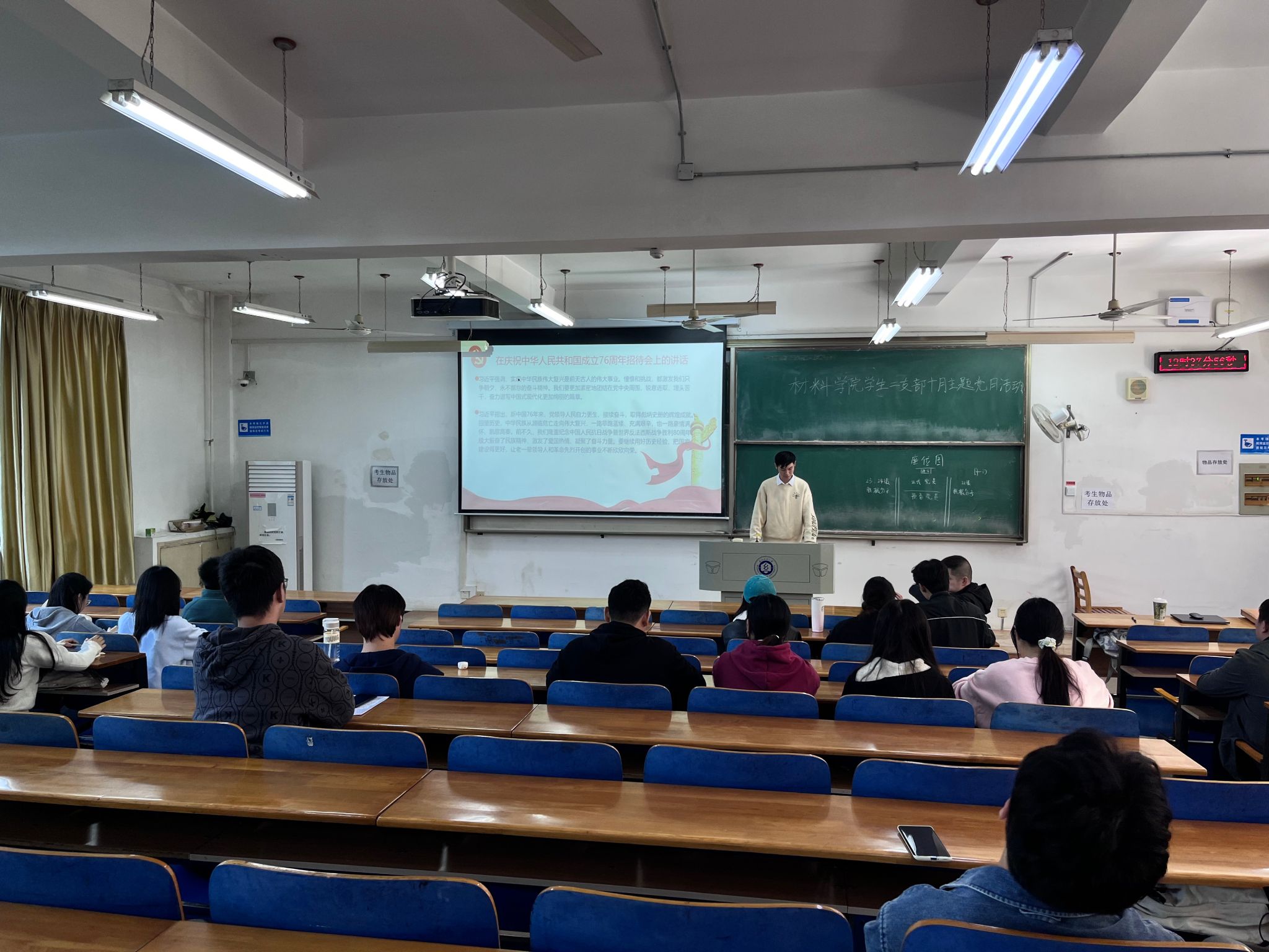 最后,支部书记胡晓在总结讲话中强调,一是要强学习,全体党员要坚持读原著、学原文、悟原理,做到学思用贯通、知信行统一;二是起模范,要时刻牢记党员身份,在关键时刻能够站得出来、顶得上去,以实际行动展现共产党员的先进性和纯洁性,努力成为同学们身边可信、可学的榜样;三是要讲纪律,要严格遵守党的各项纪律,在思想上、政治上、行动上同党中央保持高度一致,维护学生党员的良好形象。