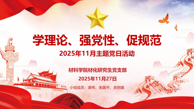 材化研究生党支部以 “学理论、强党性、促规范” 为主题,组织开展 2025 年 11 月主题党日活动,支部全体党员及入党积极分子全员参加。活动由支部副书记王鹏主持。