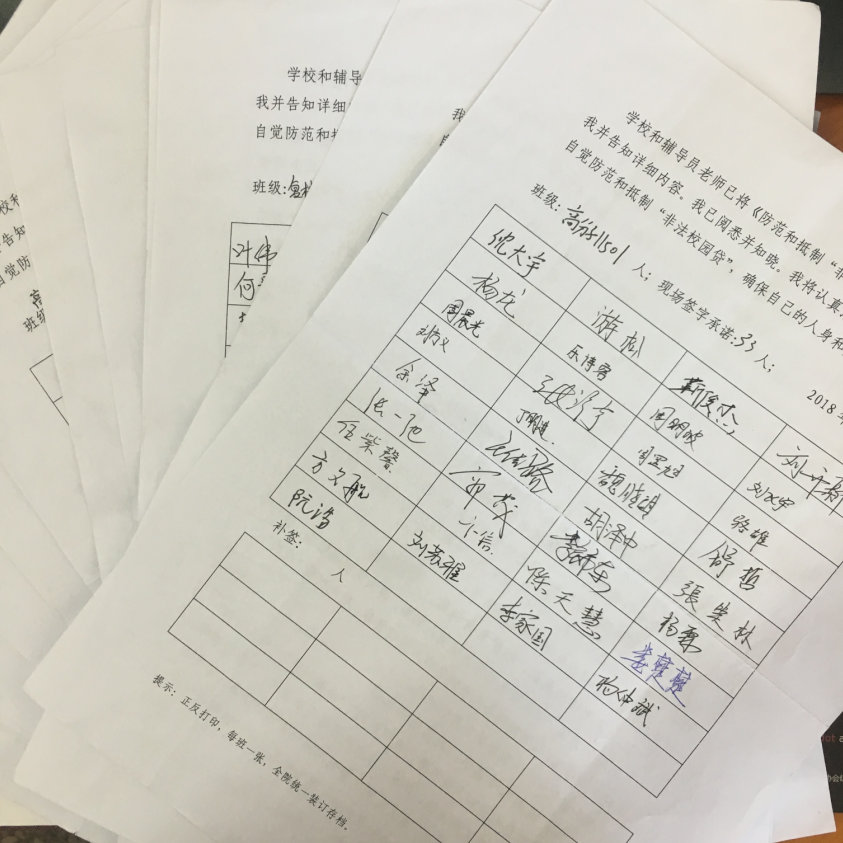 首先在各班级召开主题班会,对非法校园贷款的危害进行宣讲,辅导员老师通过微信、QQ群等方式告知学生非法校园贷的危害;其次所有在校同学集中学习非法校园贷相关案例,同时完成“防范和打击非法校园贷调查问卷”,并签订“防范和地址非法校园贷告知书”,学生本人均签字承诺所填信息真实无误。