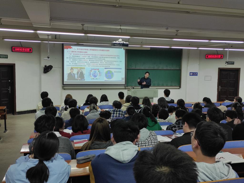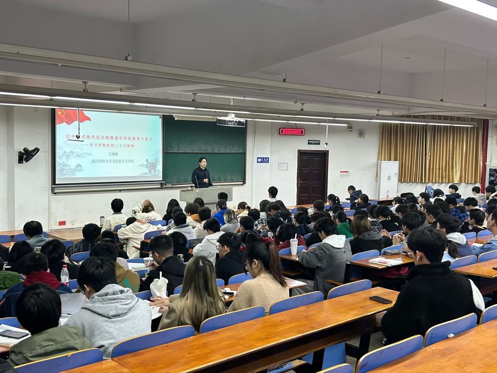 王海燕教授在阳光校区3号教学楼T102教室讲授专题党课,党课的主题是“以中国式现代化全面推进中华民族伟大复兴——学习贯彻党的二十大精神”。党课由葡京娱乐场