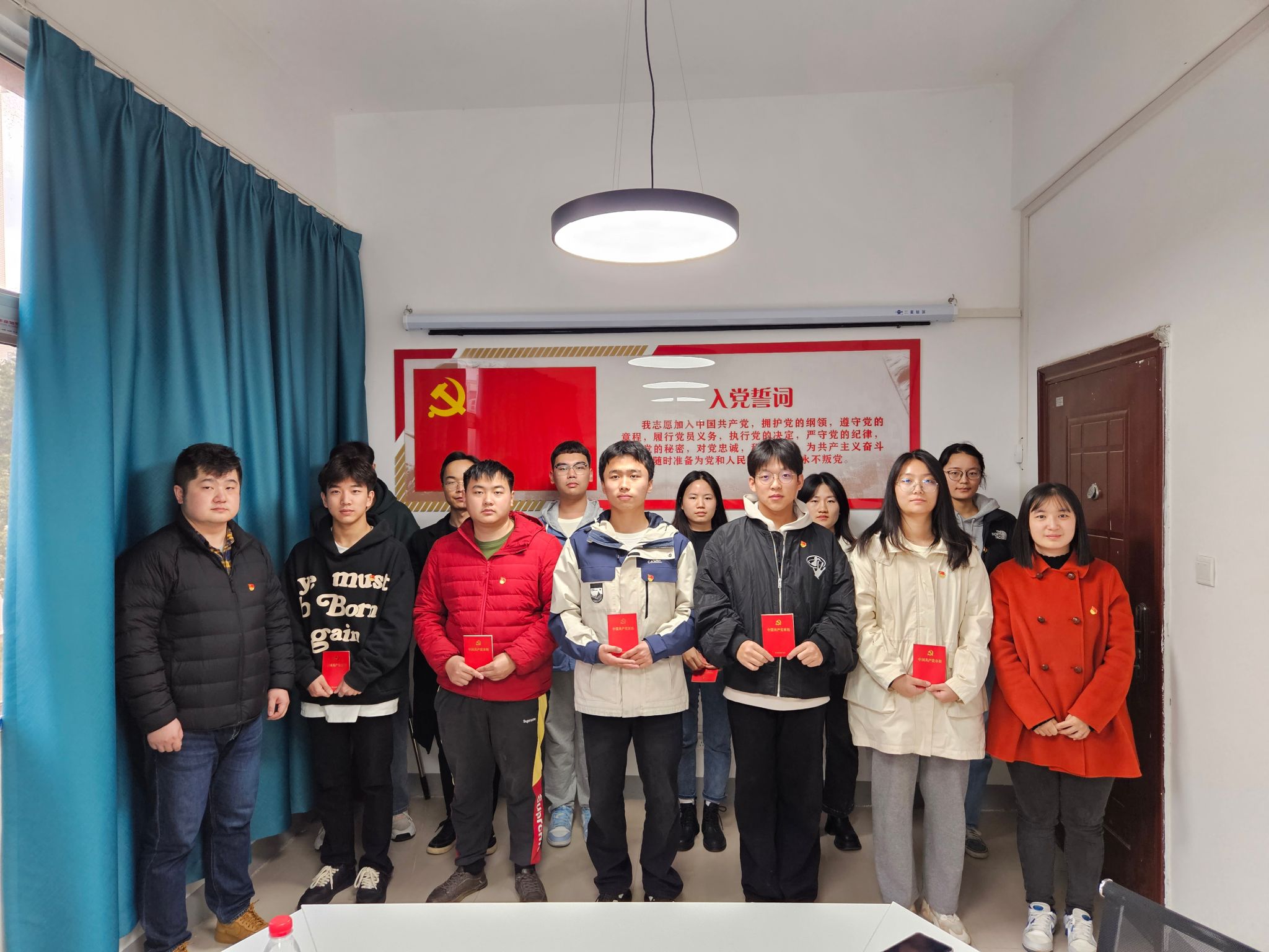 在“天生我材”学生成长服务站开展“励初心、宣誓言、担使命”2023年下半年新党员入党宣誓活动,全体本科生辅导员参加,活动由材化研究生党支部书记王鑫主持。