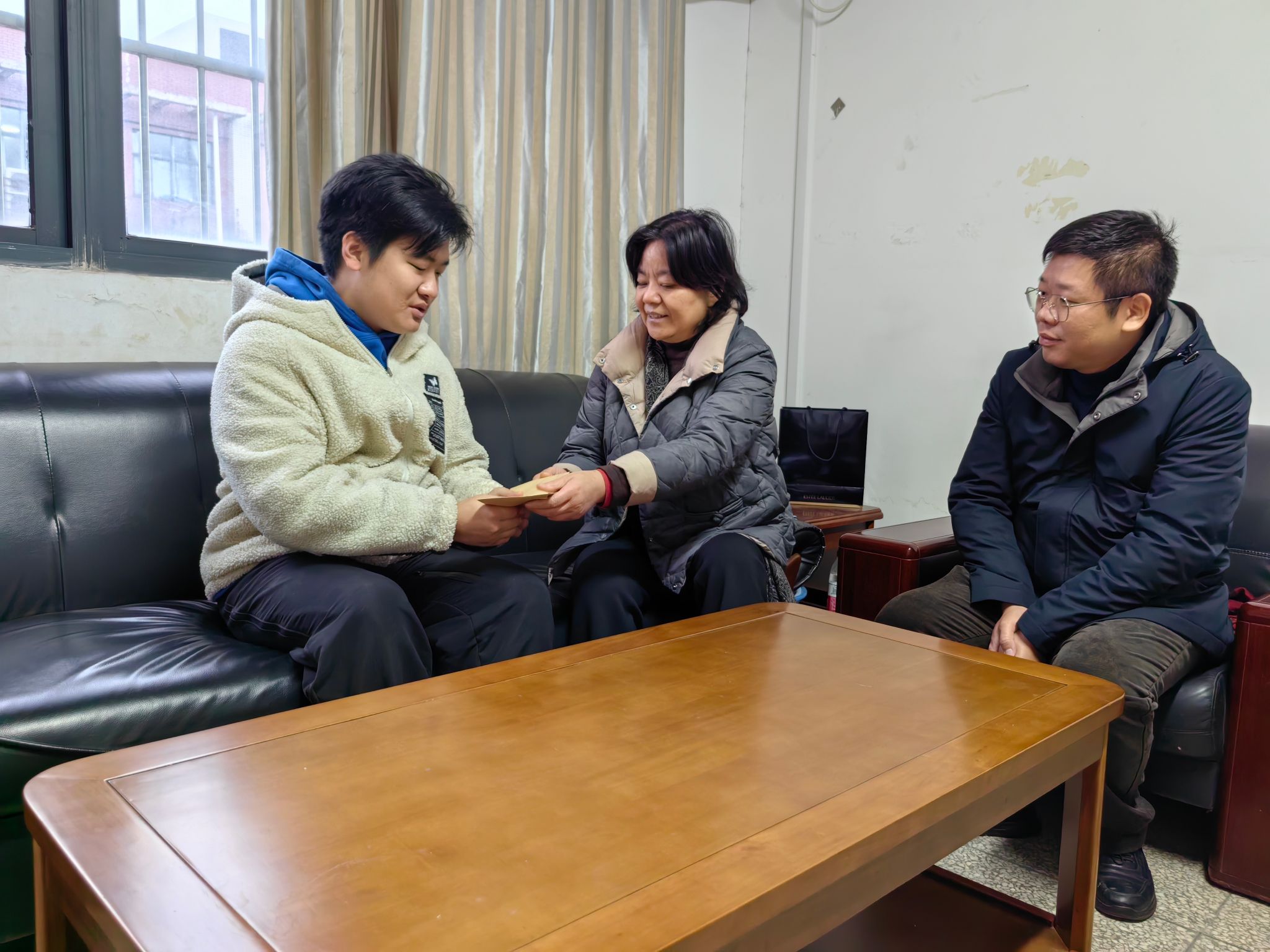陈书记将慰问金送给吕鑫杰同志并与其进行了亲切交谈,深入了解了学生的学习、生活和家庭情况,鼓励他要坚定信念,勇敢面对困难,努力学习,为实现自己的人生目标而奋斗。同时他希望吕鑫杰同志要持续发挥好党员的先锋模范作用,为同学们树立榜样。吕鑫杰同志表示非常感谢学校的关爱和帮助,作为毕业生也在积极的找工作,他将以更加饱满的热情投入到学习和工作中,不辜负学校的期望和信任。