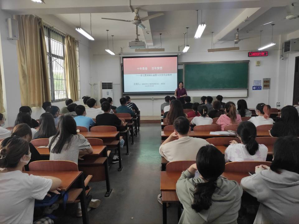 全体本科生党员上了一次生动的党课,宣讲了湖北省第十二次党代会精神。学生党支部书记、辅导员毛成兴和全体本科生党员参加了本次学习。
