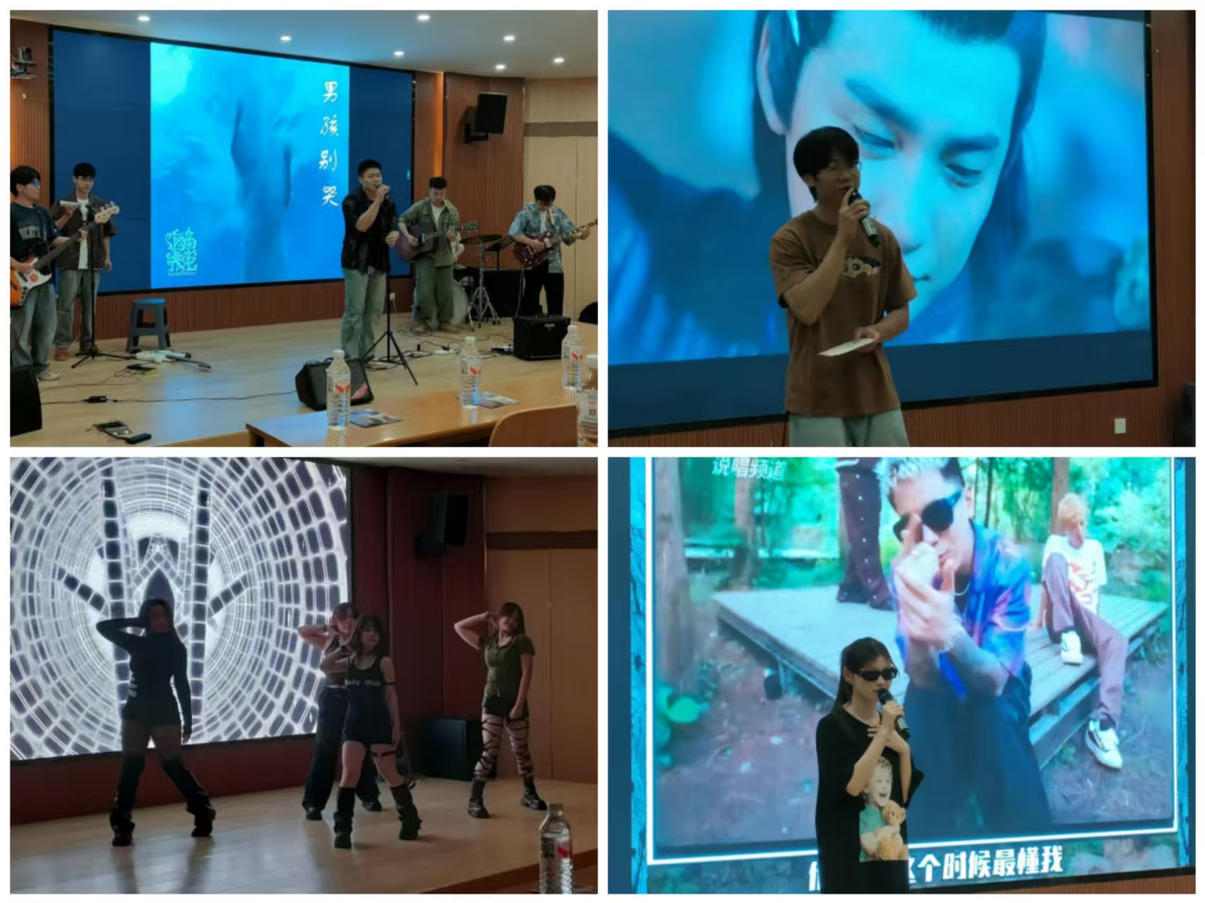 晚会节目涵盖歌曲、舞蹈、诗朗诵等多种形式,参演学生以才华与热情诠释青春风采。乐队演奏《男孩别哭》《兰州兰州》中激昂的鼓点、电吉他的轰鸣与主唱极具穿透力的嗓音交织,瞬间“燃爆”全场;独唱《不染》《晚安》《漫长的季节》用细腻声线传递情感;舞蹈《whiplash》《Two girls》《Toxic》《drama》以动感节奏展现青春活力,将现场气氛推向高潮;《老男孩》则以怀旧旋律勾起全场共鸣,诉说时光故事;诗朗诵《彼方尚有荣光》以铿锵之音传递对未来的坚定信念。而歌曲《入海》的深情演绎,则如一曲青春的离歌,将毕业生们对校园的眷恋与对未来的期许娓娓道来,为这场青春盛宴画下温暖句点。
