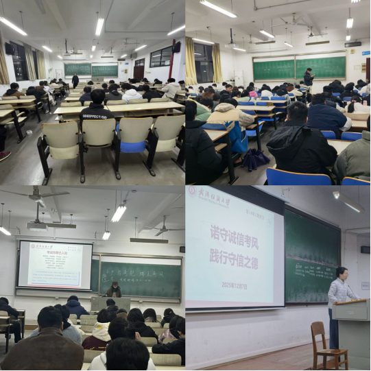 为强化学生诚信考试意识,营造公平公正的校园考试氛围,12月7日晚,武汉纺织大学分年级开展第14周晚点名活动暨”恪守诚信考风 践行守信之德“主题班会。本次活动以“恪守诚信考风 践行守信之德”为核心,通过理论学习、案例警示、备考指导等内容,推动诚信理念入脑入心。