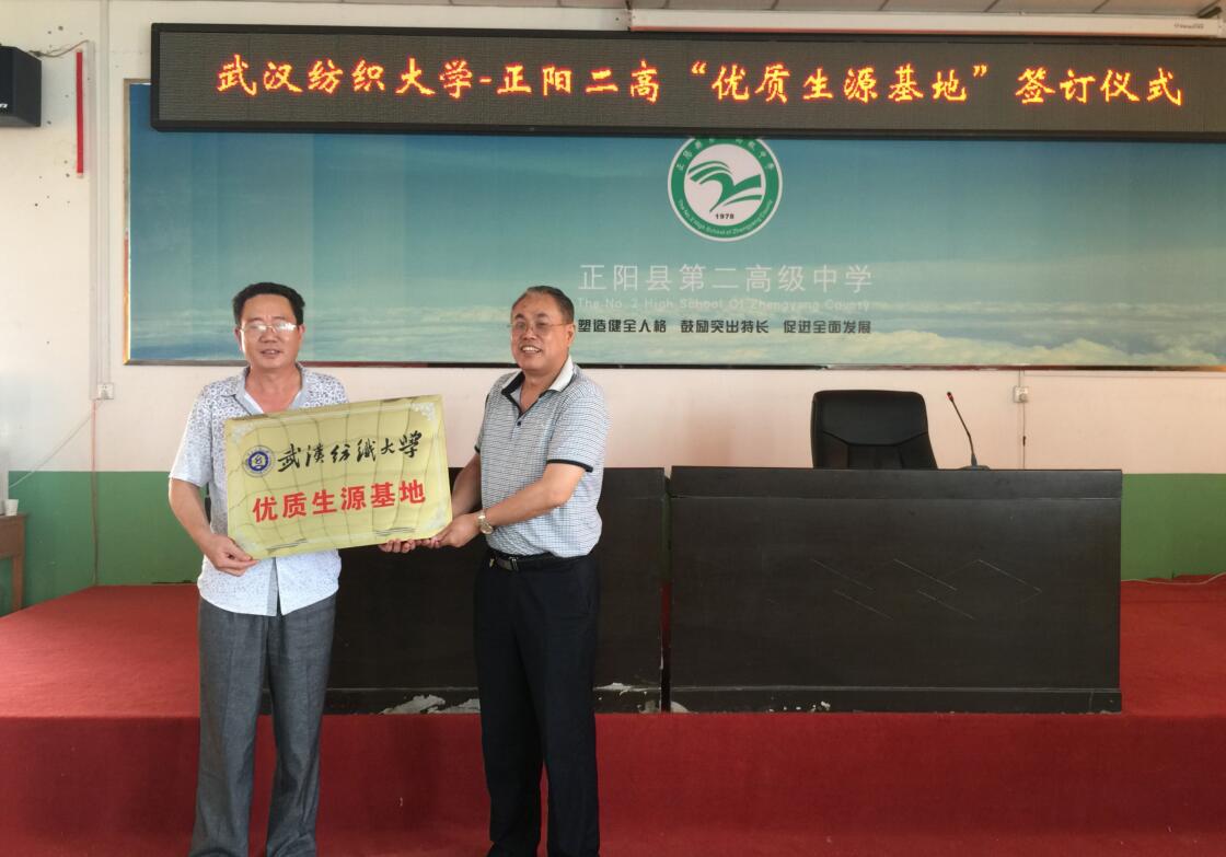 最后,双方签订了“优质生源基地建设协议”,并将“武汉纺织大学优秀生源基地”牌匾授予正阳二高。