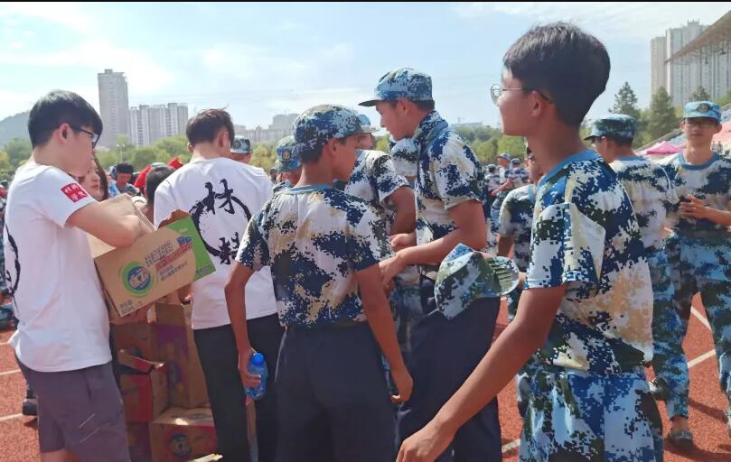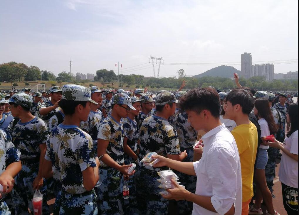 党委副书记秦梦、2019级新生辅导员祝捷老师来到阳光校区操场,看望慰问正在参训的2019级新生,为他们送上了慰问品补充能量。