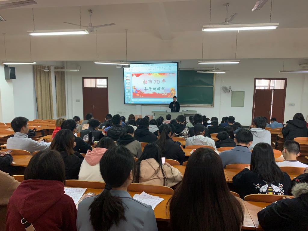 祝捷老师向在座学生党员充分阐释70年的光辉历程、伟大成就、宝贵经验,让学生党员们深入了解一个浴火重生的国家走过的壮丽历程,让学生党员们全面认识昔日国弱民穷的中国发生的历史巨变。