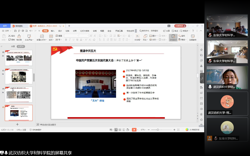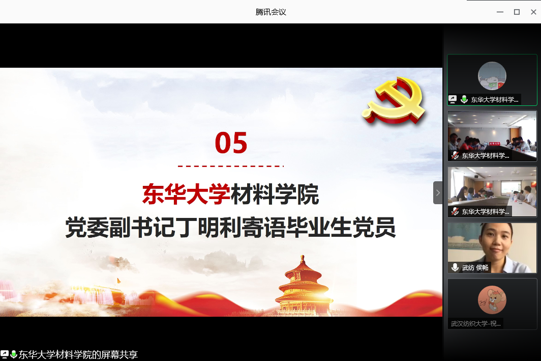 与东华大学材料学院在腾讯会议联合开展了“一五一实讲党史,牢记使命展担当”主题党日暨 2020 届毕业生党员离校教育,两院全体毕业生党员参加了此次会议。会议由东华大学葡京娱乐场