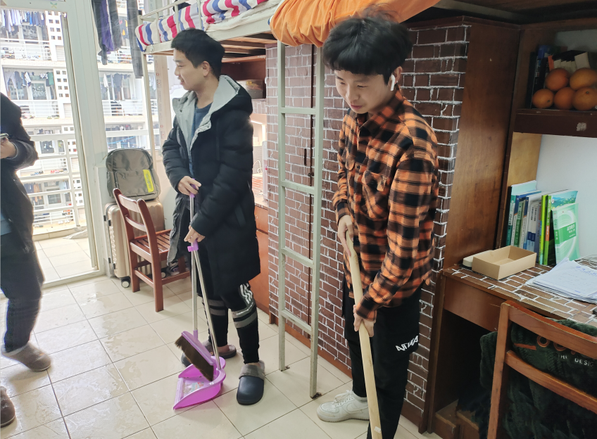 积极动员全体同学在返校后对自己的宿舍进行一次全方位的清洁大扫除活动,整理好宿舍内务,营造良好的学习生活氛围。开门开窗通风透气、清理杂物、扫地拖地……同学们化身“保洁员”,撸起袖子干得十分认真。同学们纷纷表示,本次活动不仅整理了寝室卫生,又通过劳动拉近了同学之间的距离,良好温馨的寝室氛围又回来了。