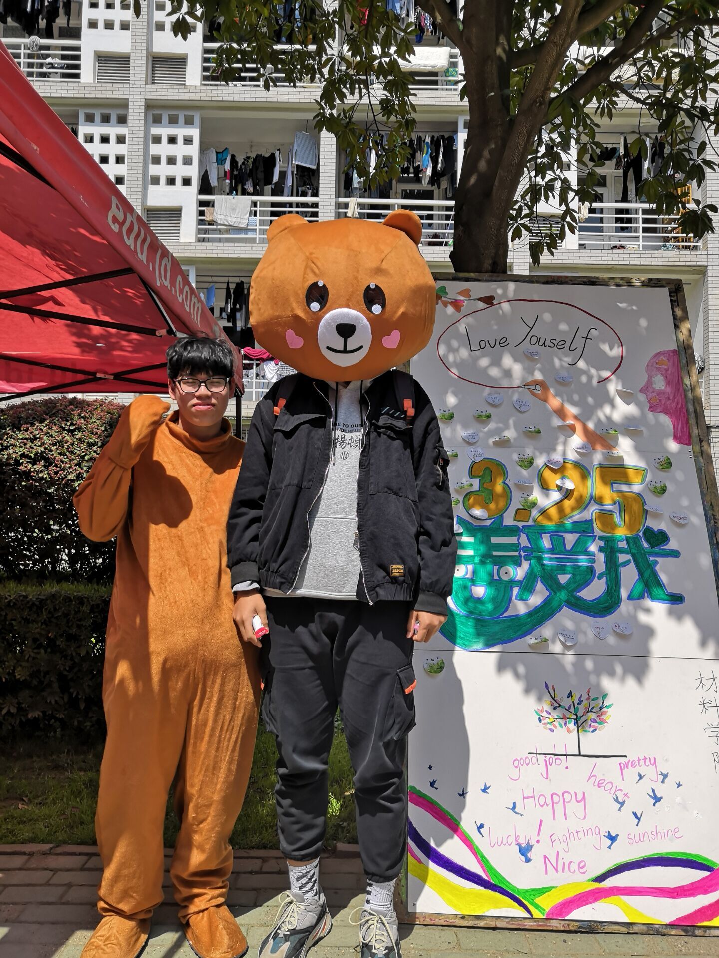 提前策划了一些有趣的小游戏,让同学们在游戏的热身下更好地缓解压力,从而更好地达到向在校学生宣传心理小知识的目的和效果。并在一食堂侧门进行摆点,向过往的同学老师们发放心理知识宣传单,向他们介绍“3.25善爱我”的理念,并邀请他们进行小游戏或者写下今日心情、对“325善爱我”的看法等等,贴在宣传画板上,并为同学们奖励了提前备好的小零食小礼品。来到摆点处的同学们除了可以学习心理知识、获得小礼品外,还可以和我们穿着布偶熊的工作人员合影。