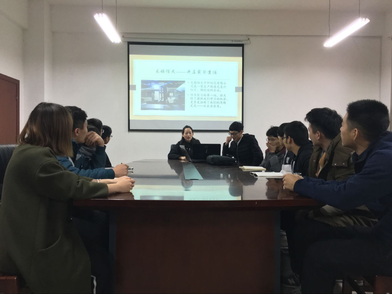 优秀实习生代表杨瑞华同学从实习之路、实习感想、实习收获、就业方向、职业能力展现、职业价值观、职业规划等七个方面对本次的实习做出了自己的总结。她说,通过此次实习,他们对服装面料从原料切片短纤生产到针/梭织面料的织染、后整理再到成衣的生产制造的流程都有清晰地认识,培养了自身独立思考和解决问题的能力,通过五个月与企业“亲密接触”的机会,同学们基本确定了各自的就业方向。