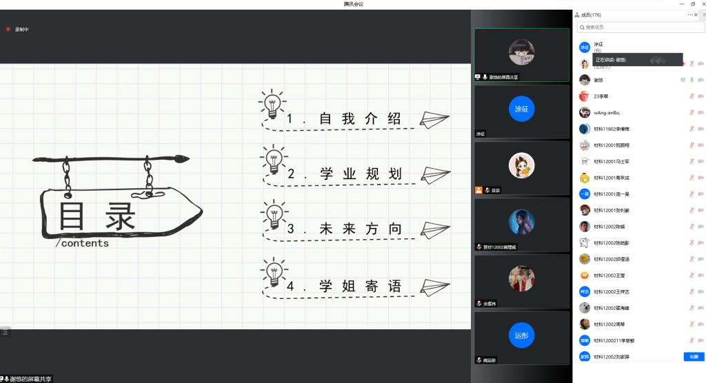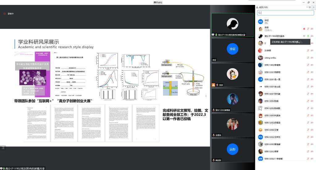 高分子11801班的李翠,则以自己做班长的四年经历分享了班级建设经验,尤其学风建设。今年高分子11801班考研上岸率64%以上,全院甚至全校最高,取得了优异的成绩,与良好的班风学风密不可分。