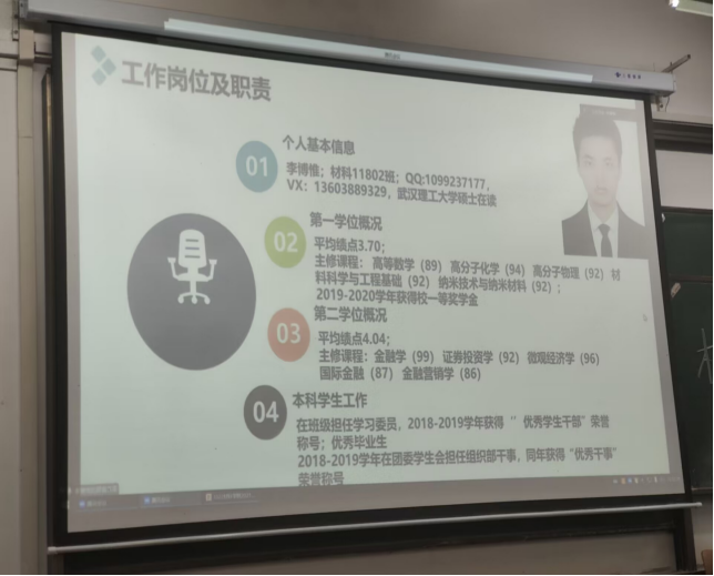 于10月22日下午在03-120开展以“学业规划交流”为主题的朋辈领航分享会。考虑疫情影响,本次会议邀请2018级考研武汉理工大学的优秀学生代表李博惟做线上分享。辅导员毛老师以及2021级全体同学参加了本次大会。