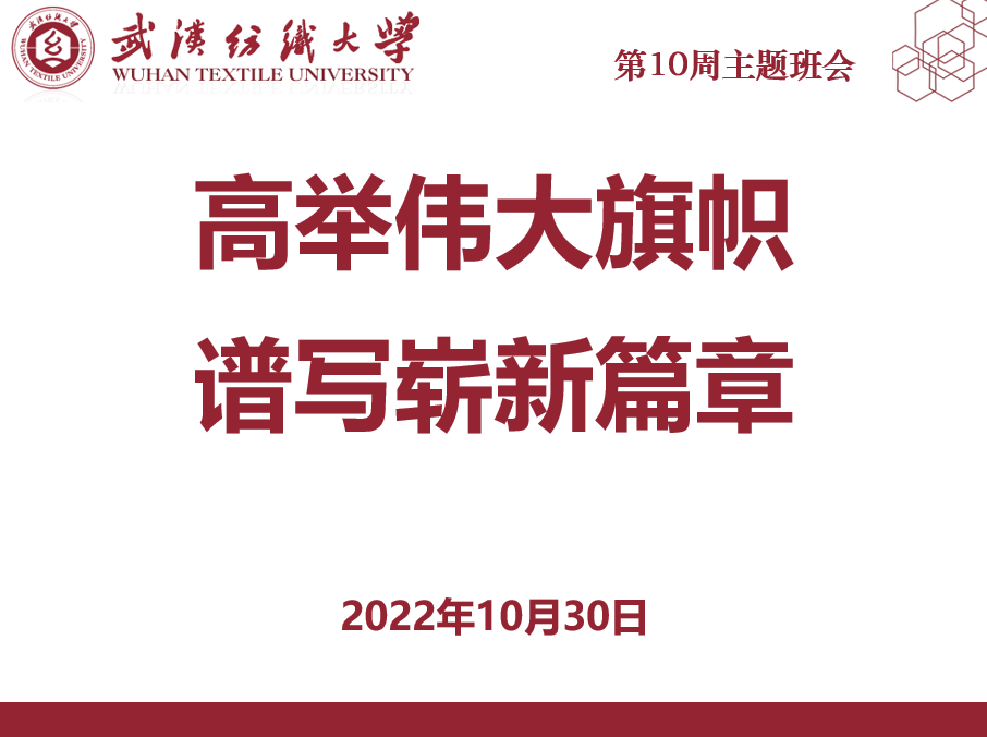 于10月30日下午组织线上“高举伟大旗帜,谱写崭新篇章”主题班会,此次班会由各年级辅导员、研究生辅导员及各班班主任共同参与。