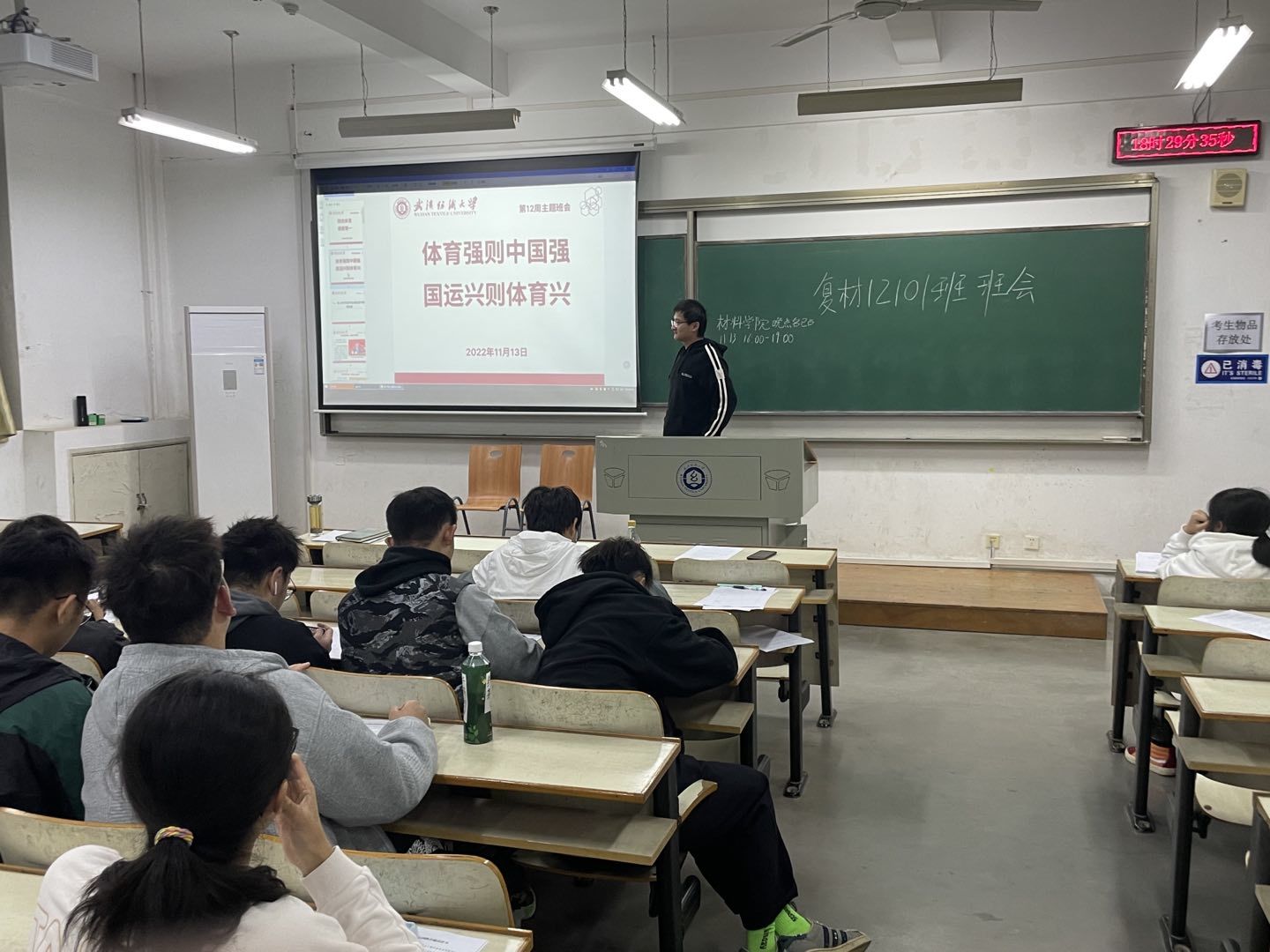 体育代表着青春、健康、活力,关乎人民幸福,关乎民族未来。会上,各班主任、辅导员宣讲了习近平总书记关于体育的论述——培养德智体美劳全面发展的社会主义建设者和接班人,要树立“健康第一”的教育理念,开齐开足体育课,帮助学生在体育锻炼中享受乐趣、增强体质、健全人格、锤炼意志。在体育历史上还涌现了“女排精神”“女足精神”等体育精神。中华体育精神,以“为国争光、无私奉献、科学求实、遵纪守法、团结协作、顽强拼搏”为主要内容,是中国精神的重要组成部分。各班班会结合学校有关体育活动安排,鼓励同学们积极参与各项校内外体育活动,弘扬运动精神、绽放纺大风采。