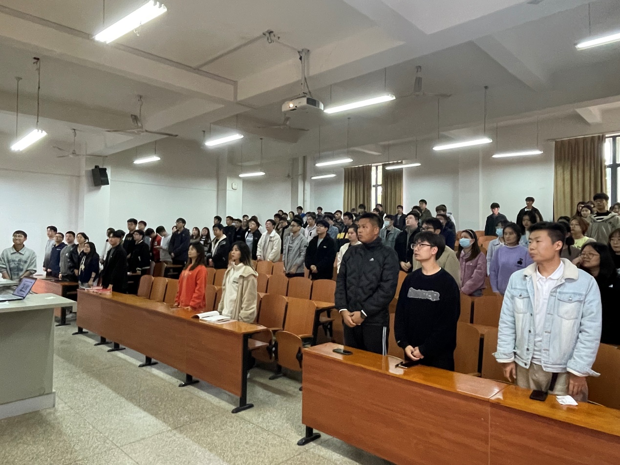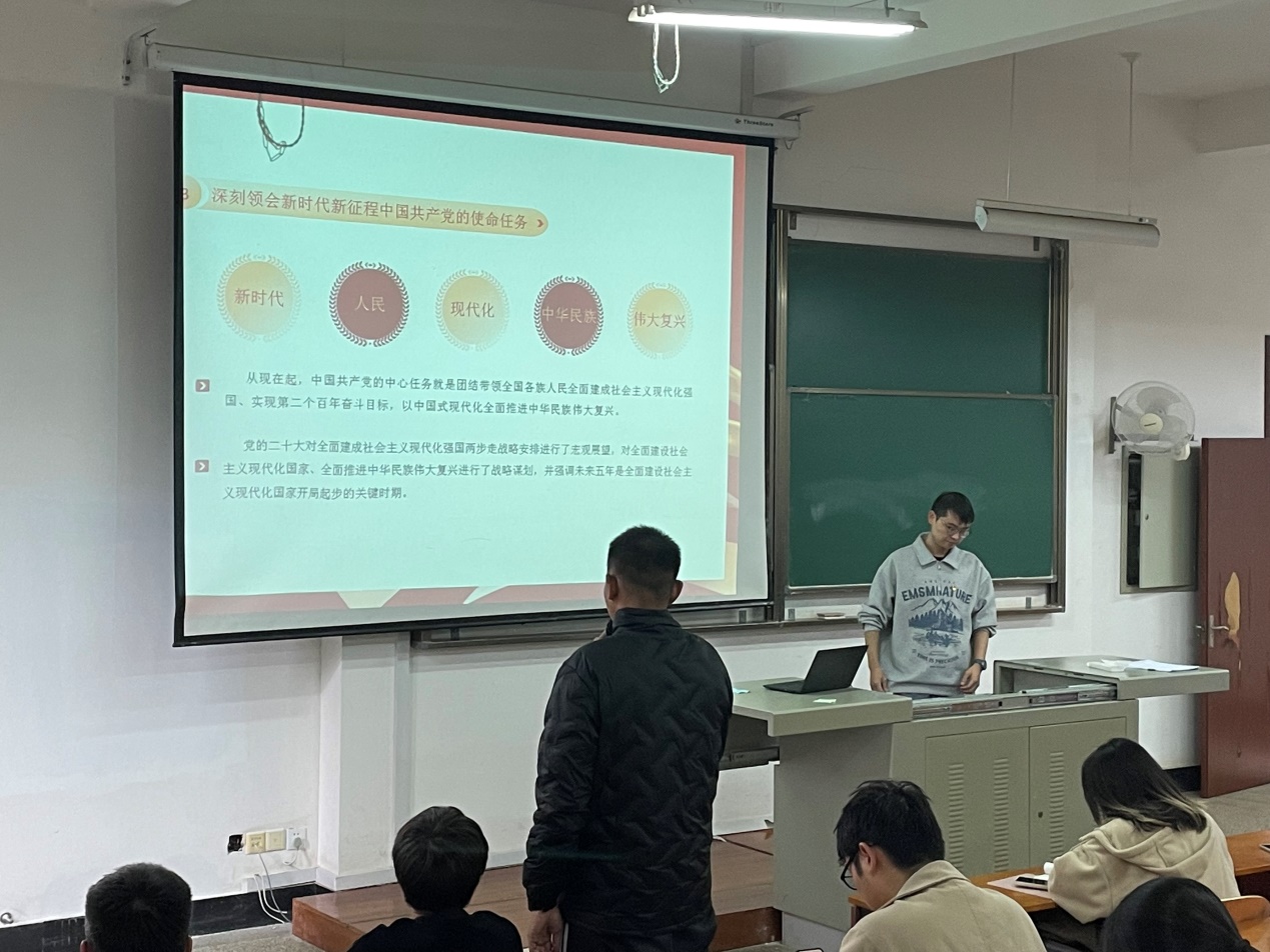 最后,支部副书记朱国彬总结讲话。首先对此次主题党日的实施效果进行肯定,并鼓励大家继续深入学习党的二十大报告等纲领性文献,以坚定新征程的信心与决心,贯彻党的二十大精神,为早日实现中华民族伟大复兴而奋斗。同时勉励青年学生争做新时代的奋斗者,肩负历史责任,将学习的理论知识转化为提高综合素质与个人修养的不竭动力,体悟习近平总书记对青年人的嘱托,不忘初心,让青春在火热的实践中绽放光芒。通过参与主题党日活动,大家更加坚定了跟党走的信心与决心,意识到应该更加注重与时俱进,让青春之花在实现中华民族伟大复兴的新征程上绚丽绽放。