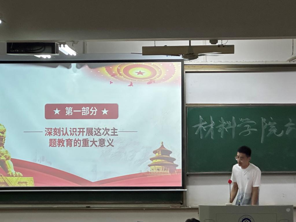 学生二支部于3号教学楼03-319、03-320教室召开学习“习近平总书记在中央政治局第五次集体学习时的重要讲话精神”、“习近平总书记关于主题教育系列重要讲话精神”主题党日活动。本次会议在两个分会场进行,分别由组织委员尤明珠和材科党小组组长杨梦蒂主持。