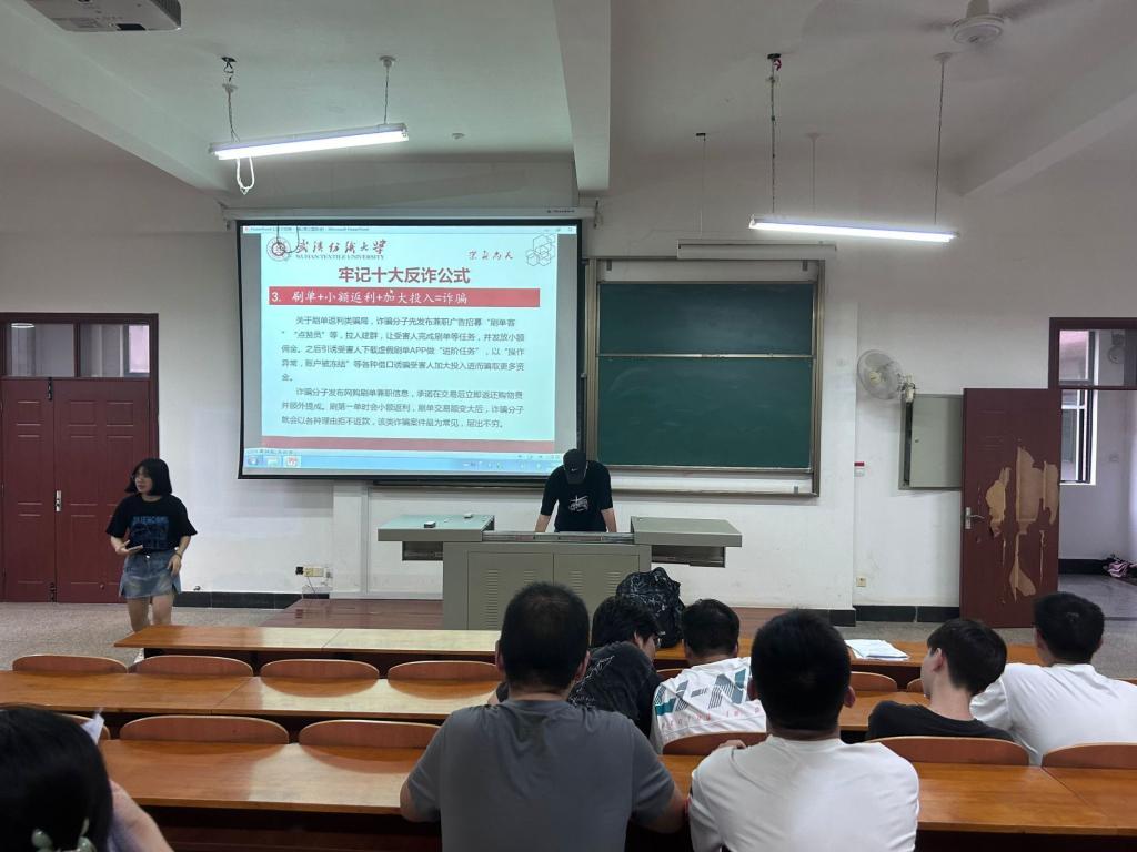 随后,各班还组织学习了《中华人民共和国反电信网络诈骗法》,引导学生要学会用法律保障自身权益,同时,还就常见的诈骗案例学习了“十大反诈公式”,进一步加强了学生的信息保护意识,提升了学生预防电信网络诈骗的技能。