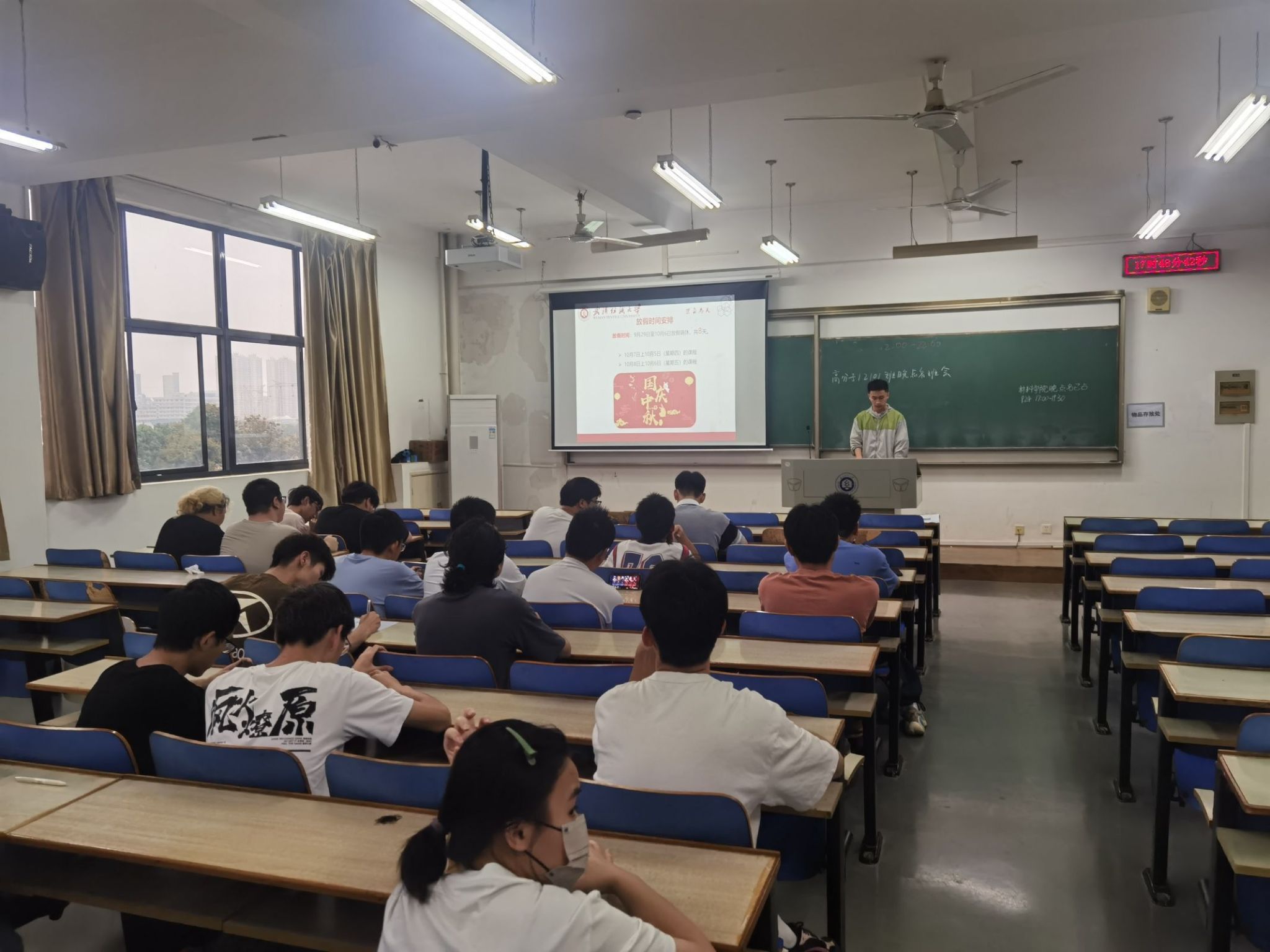 会议伊始,全体辅导员、班主任对所带的年级进行点名,核查学生报到情况,落实并上报未报到学生的名单及事由,班主任和辅导员对未到的学生进行逐一联系。班主任、辅导员结合学工部下发的晚点名要求,召开“双节同庆 安全牢记”主题班会。班主任围绕双节假期安排,着重强调了放假时间安排,提醒同学们关注自身的人身和财产安全,预防安全事故的发生,确保假期的安全稳定。随即,各班班主任带领同学们学习了《武汉纺织大学本科生考勤及请假管理办法》,组织学生签订留校安全承诺书。随后,各班班主任带领同学们学习了本科教育教学审核评估学习手册,向同学们讲解了审核评估对学校发展的重大意义,关乎学校的荣誉与学生个人的发展,号召同学们认真学习手册上的内容,在面对审核评估时做到客观公正、实事求是。