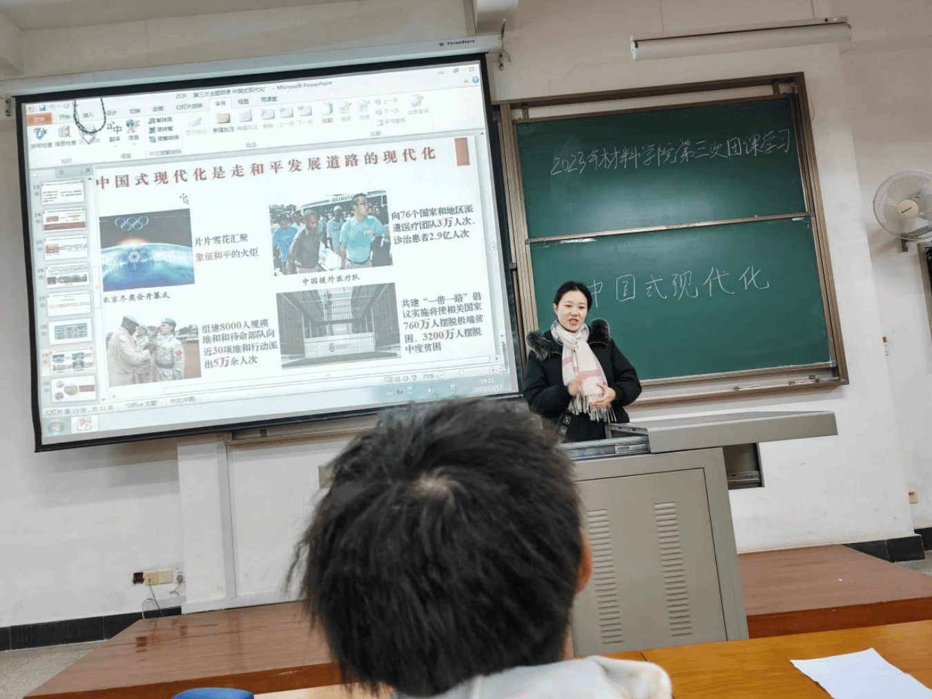 随后,张老师就“强国复兴之路,新时代青年怎么做”“新时代新征程党和国家事业发展的目标任务”两个方面,向同学们讲解党的二十大关于全面建成社会主义现代化强国、以中国式现代化全面推进中华民族伟大复兴的战略部署和习近平总书记的相关重要论述。