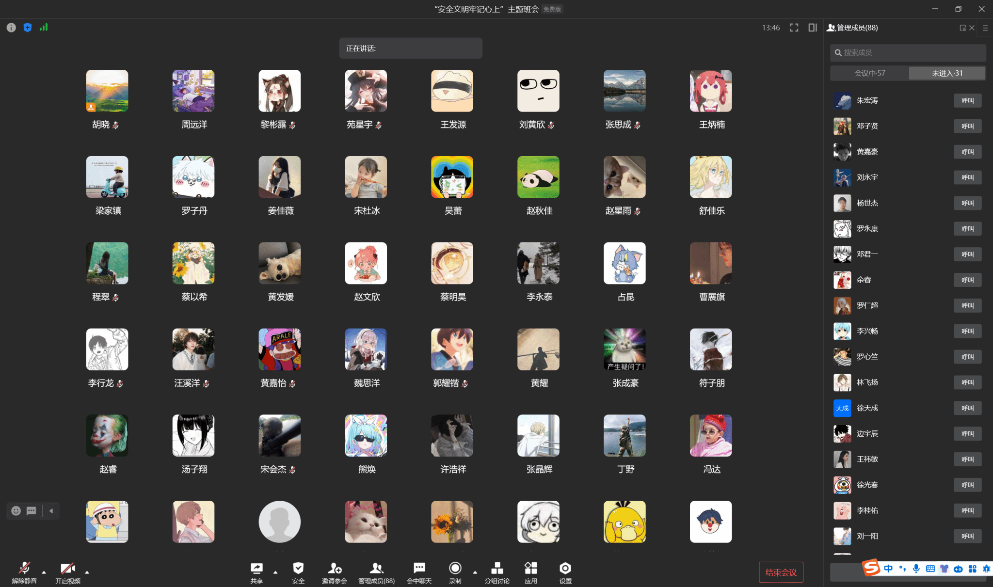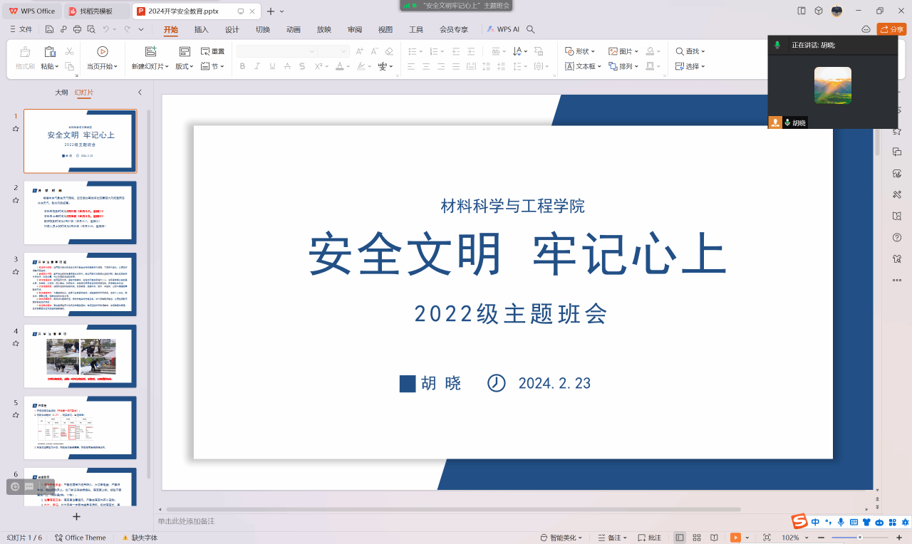 全体辅导员利用线上网络平台资源召开“安全文明牢记心上”主题班会。