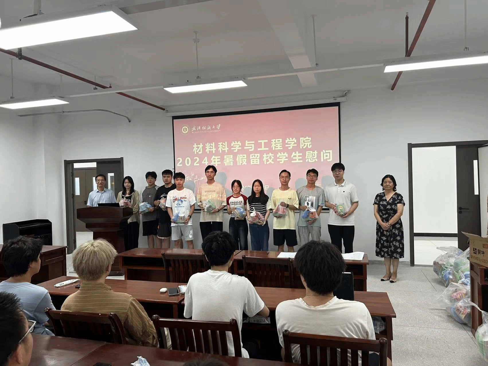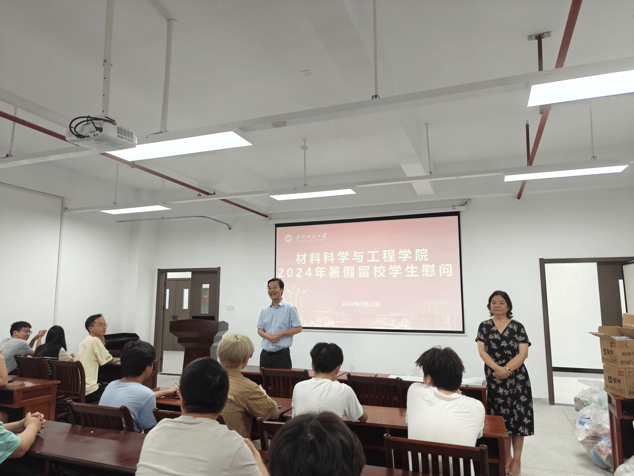 于7月22日上午开展了暑期留校生慰问活动。院长王罗新、党委书记陈桂枝、值班辅导员参与此次慰问活动,活动由党委副书记魏剑主持。